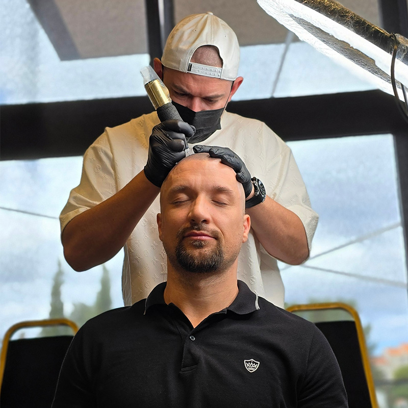 Mit der modernen Haarpigmentierung (Scalp Micropigmentation) bieten wir dir in Klagenfurt, Kärnten, eine bewährte und effektive Methode, um den Look von echten Haarstoppeln oder vollerem Haar dauerhaft zu erzeugen.